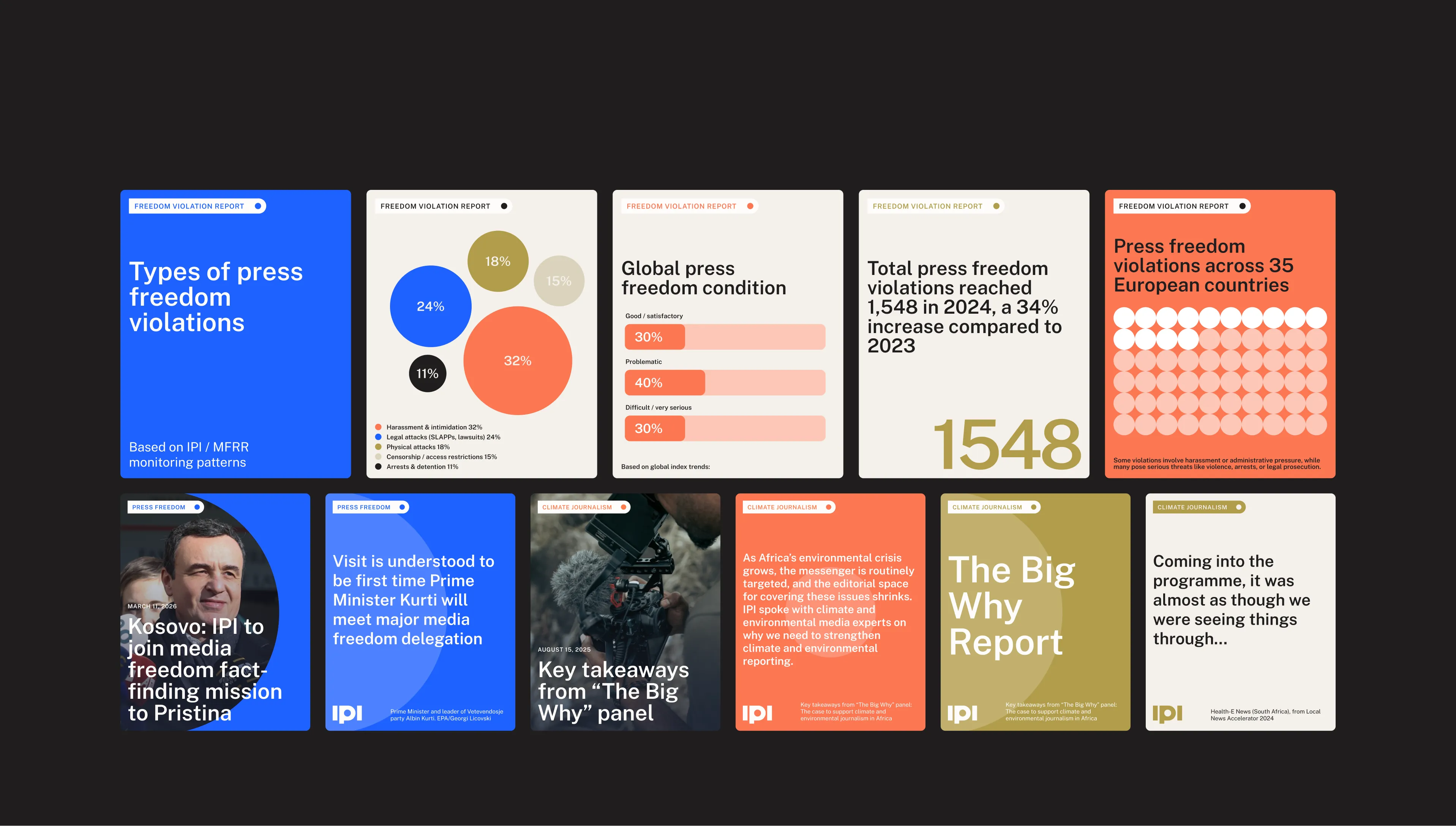 The International Press Institute is a global network of editors and journalists defending media freedom across nearly 100 countries. When an organisation with 75 years of institutional credibility decides to evolve, the design process becomes something more than aesthetics. IPI needed a visual identity that honoured decades of earned trust while speaking to a transformed media landscape: global, digital, urgent. We delivered a system that balances legacy with clarity: a bold mark, a decisive colour, every element purposeful and scalable.